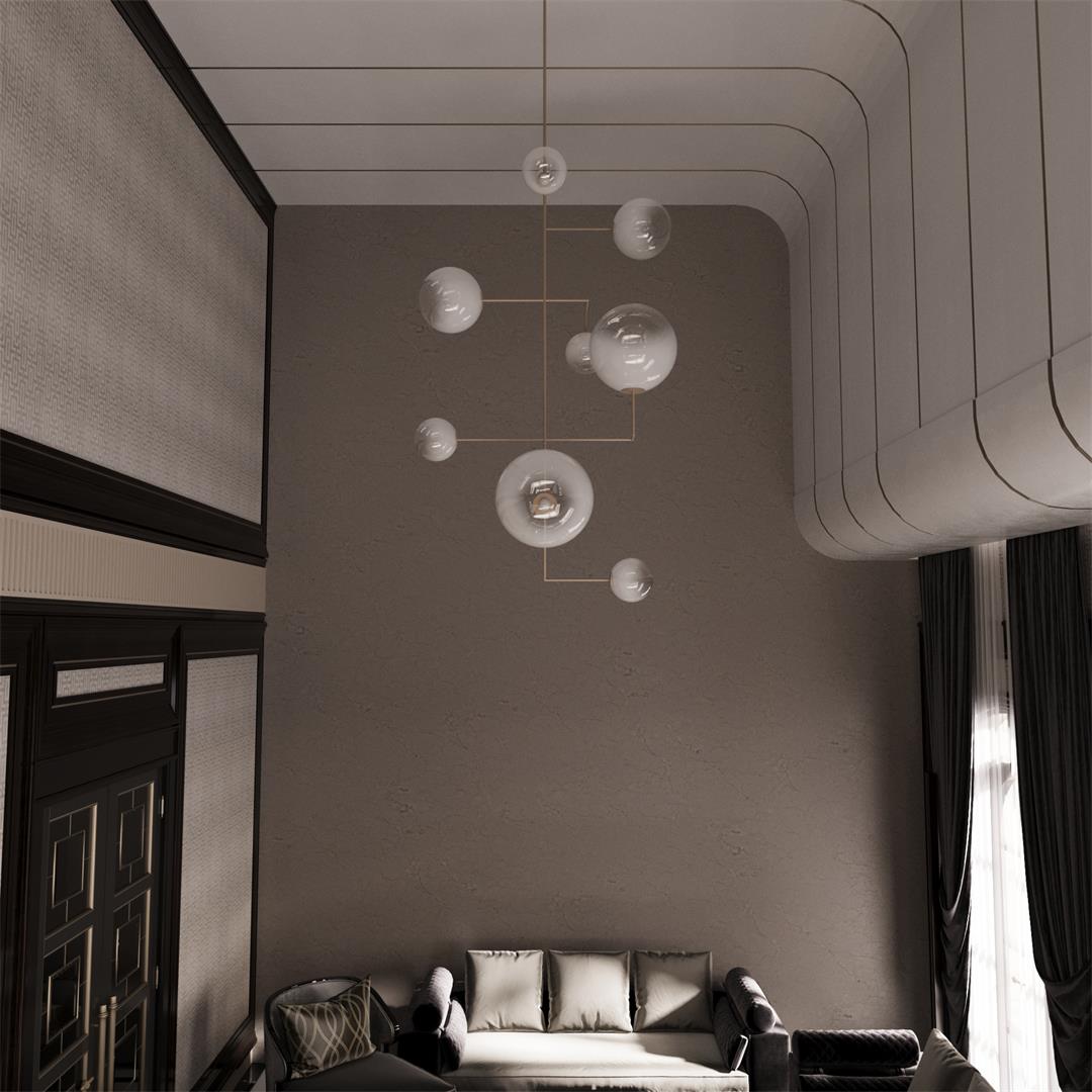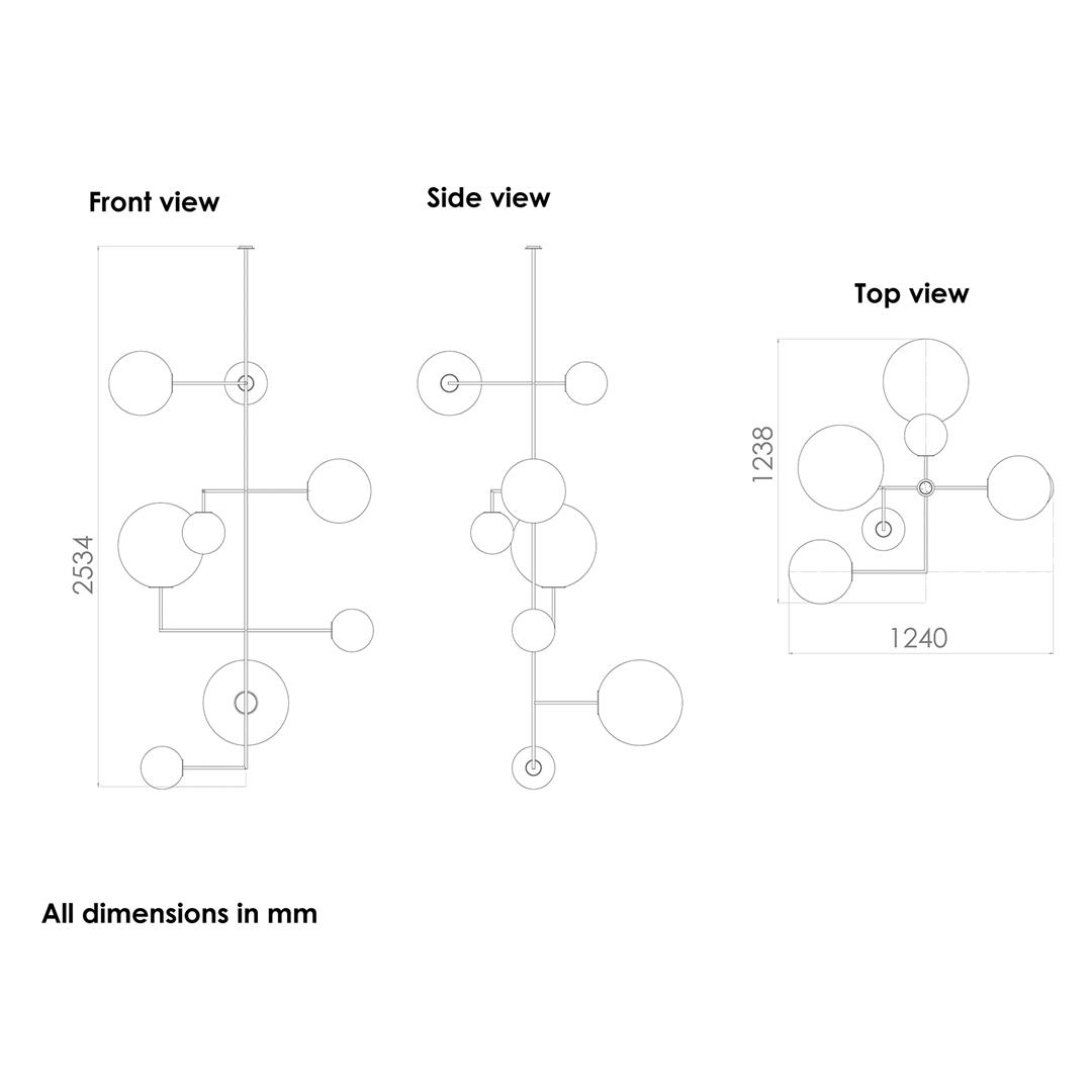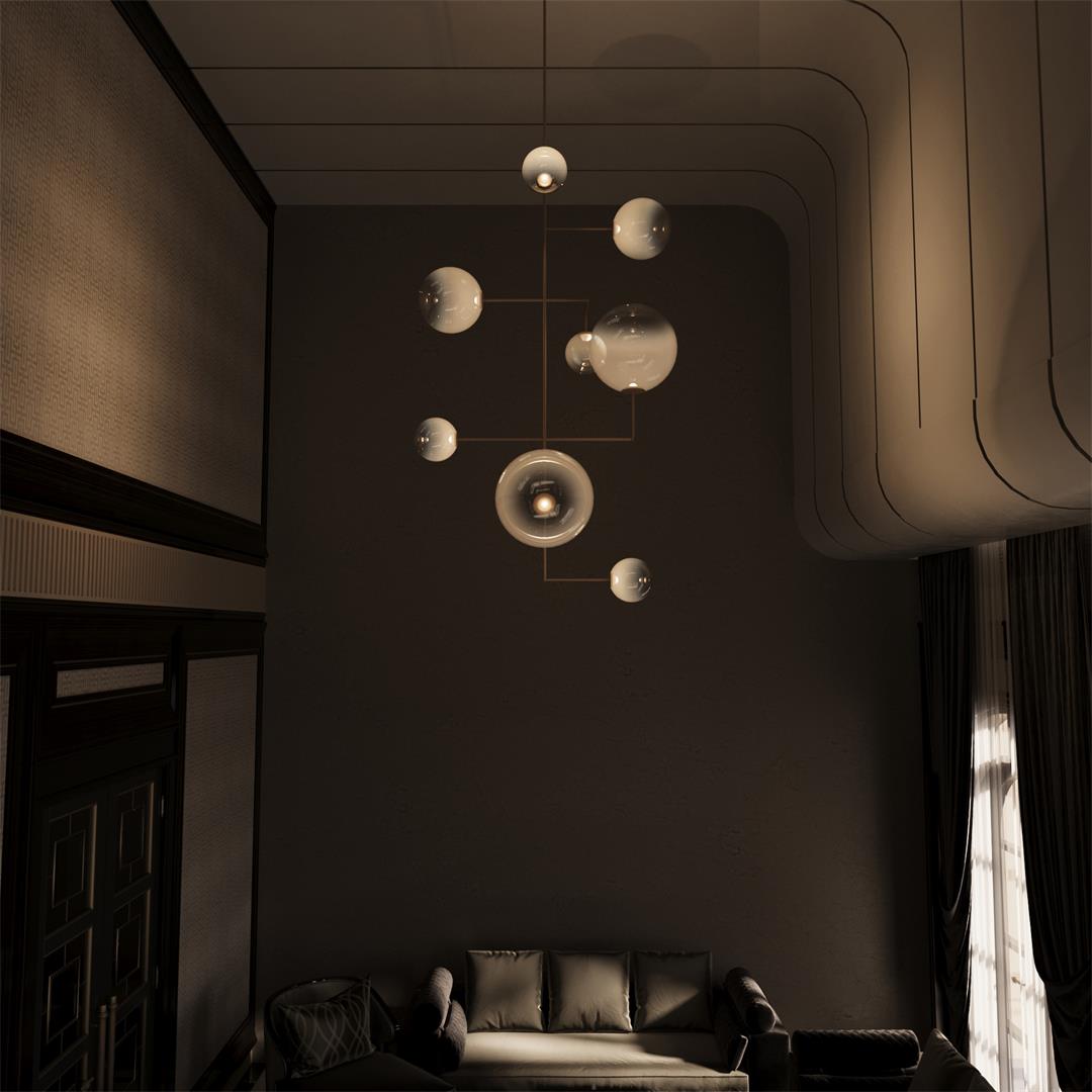 The globes are supported by slim metal rods with a clean, geometric arrangement.