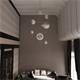 The fixture hangs from a high ceiling, making it a dramatic centerpiece.