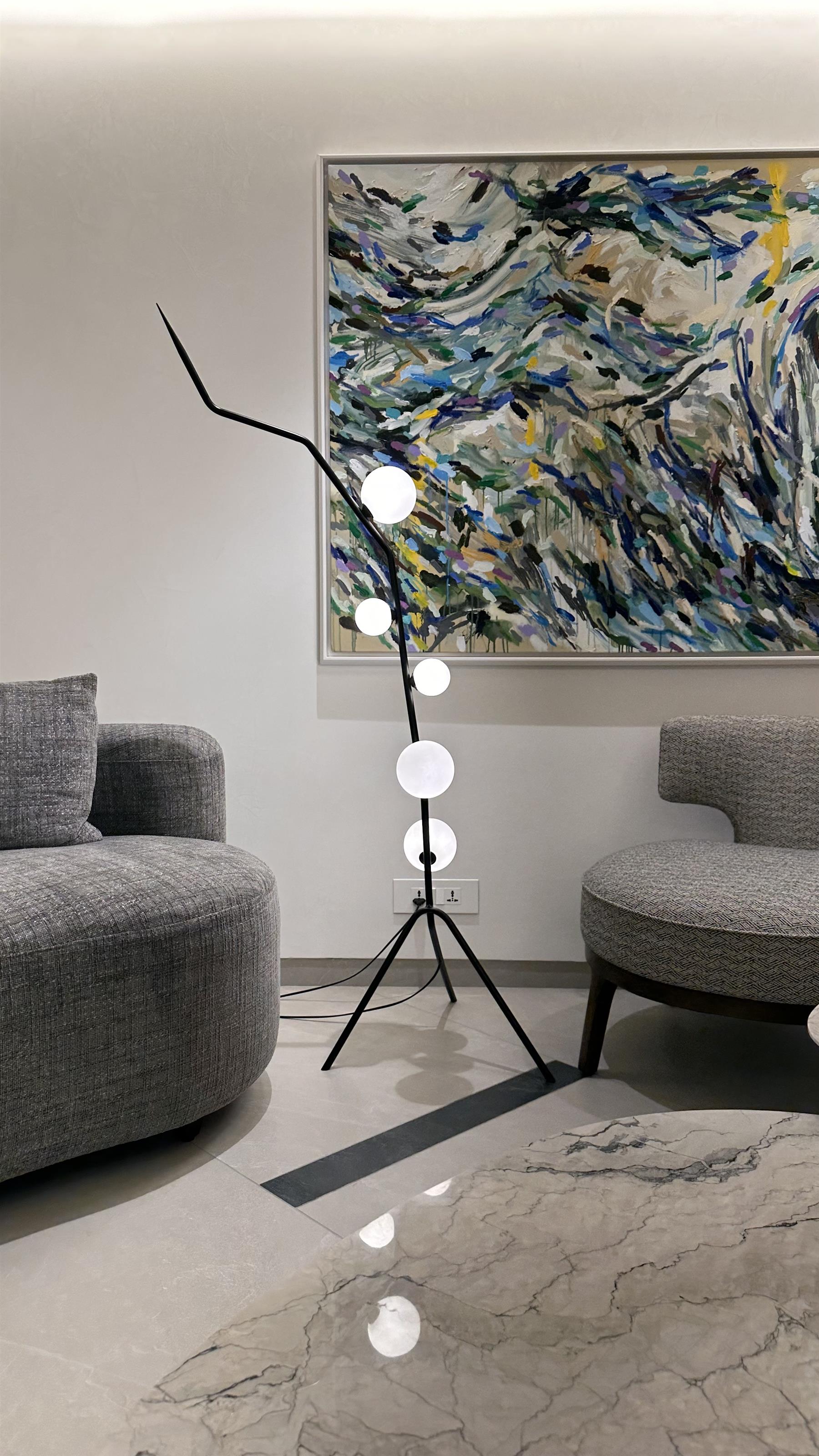 A fixture which transcends the artificial with its design which delves into the natural and looks as if the branches of trees have illuminated nodes at the end. The flat diffuses design of the nodes results in a diffused spread of light all around.