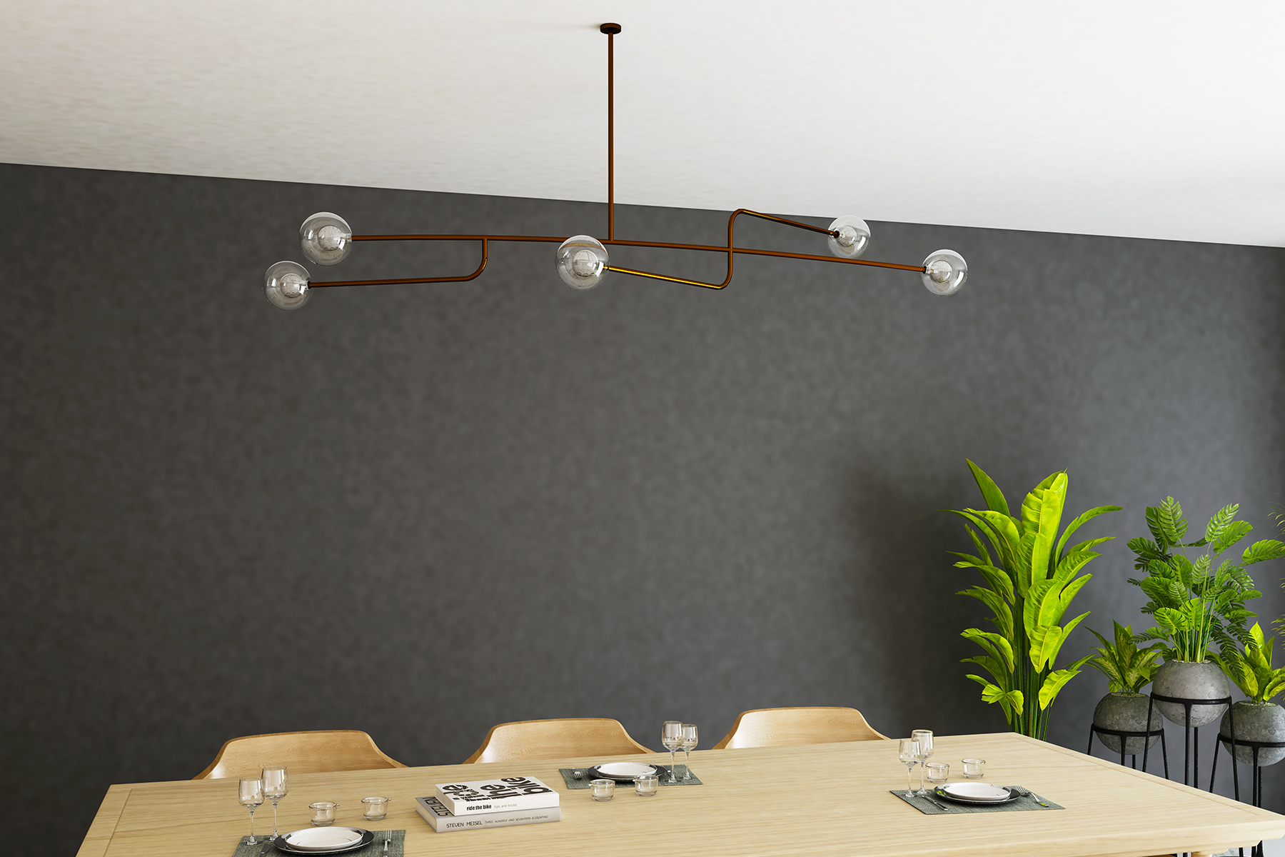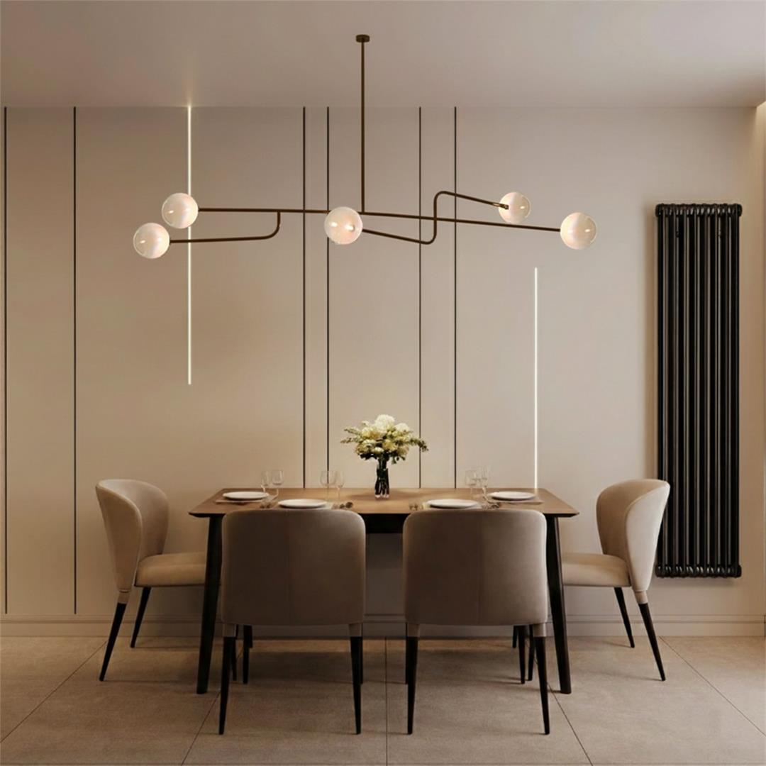 - Suspended glass globes set in succession intersecting at the center yielding calmness in its vicinity.