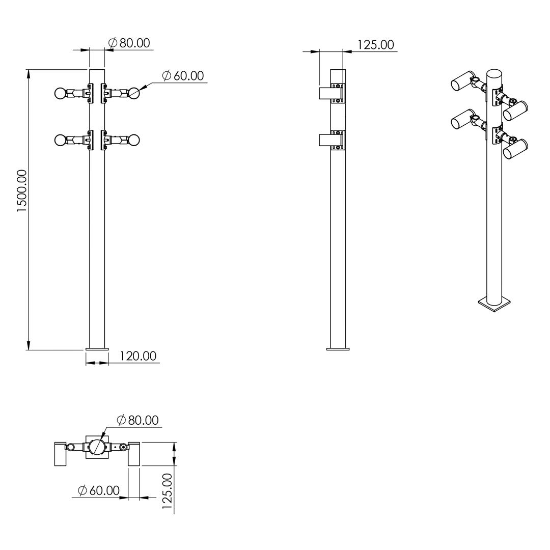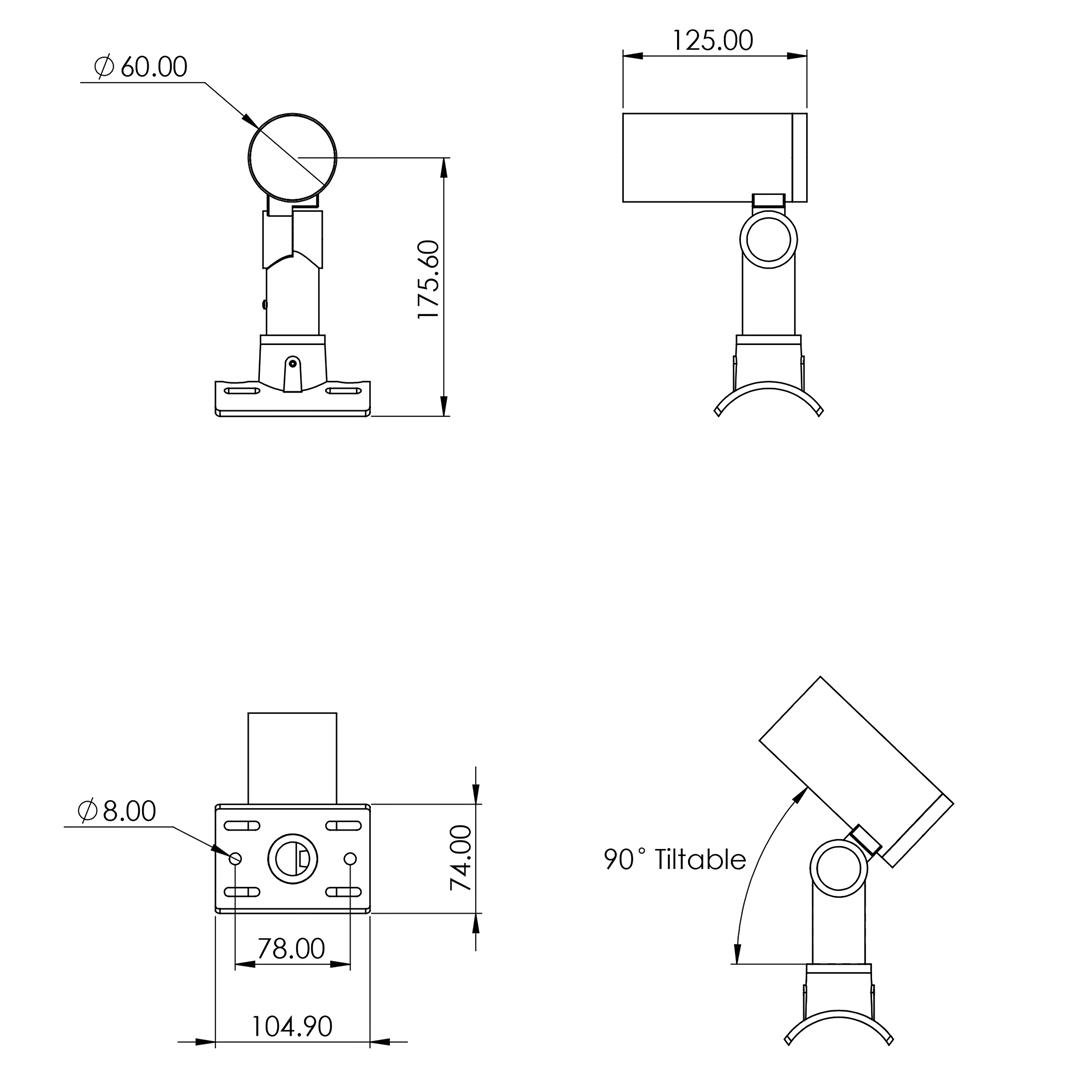 | Ø60X125mm Pole Bracket Suitable For : Pole OD - Ø 80mm |